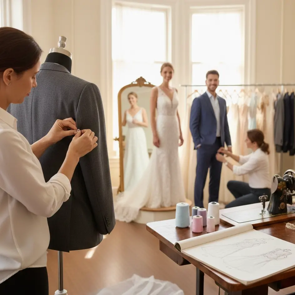 Experience expert tailoring with a complimentary consultation for all new clients. Enjoy the confidence of a flawless fit for your bridal gown, suit, or special occasion wear, delivered in just 4-7 days. Let us bring your dream look to life with personalized service and unmatched craftsmanship.